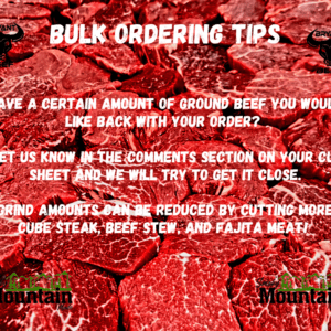 CUT SHEET TIP: When filling out your Cut sheets, it is our recommendation to choose as many of the cut options available within the cut sheet as possible. Ground beef is going to be in your order with bulk beef, question is, how much?