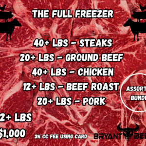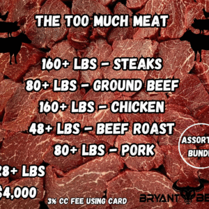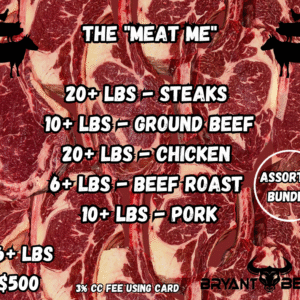 Our Bundle Packages consist of Beef, Pork, and Chicken for a balanced freezer stock. Bundles are customizable upon request after purchase.